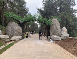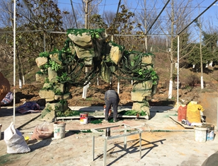 南京高淳大山國(guó)際慢城水泥仿真假樹(shù)大門(mén),這是一個(gè)南京慢城內(nèi)部一個(gè)小景區(qū)大門(mén),高度4.3米利用兩棵假樹(shù)樹(shù)枝搭接形成一個(gè)假樹(shù)大門(mén),配上山東泰山石組合真山假樹(shù)搭配。?也是此景區(qū)的一個(gè)景點(diǎn)。工期12天。樹(shù)葉配置...
