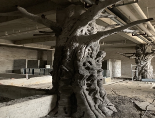 安徽九華山佛緣基地仿真包柱子榕樹(shù)高3.5米直徑80公分,采用水泥直塑與真樹(shù)枝結(jié)合。工期5天