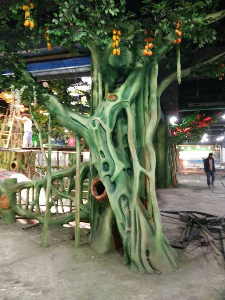 卡通仿真樹(shù)是兒童樂(lè)園最招小朋友熱愛(ài),它采用人工雕刻手法,但不需要太逼真要抽象話,顏色要與顯示中樹(shù)有所區(qū)別。本項(xiàng)目工期25天4棵仿真榕樹(shù)。每棵樹(shù)樹(shù)葉有所不同。