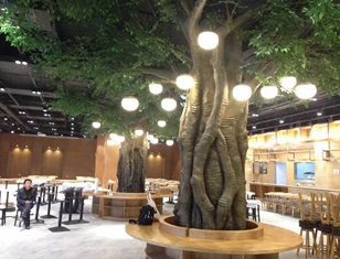 本項(xiàng)目建設(shè)在常州飯店,樹高4.5米直徑1.2米蓬徑6米,這個(gè)項(xiàng)目特點(diǎn)是樹的下部被圓桌包裹所以下面就沒有做。樹上掛滿了燈籠營造一個(gè)非常愉快的心情。工藝水泥直塑樹枝嫁接工藝。工期20天