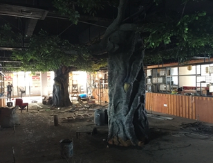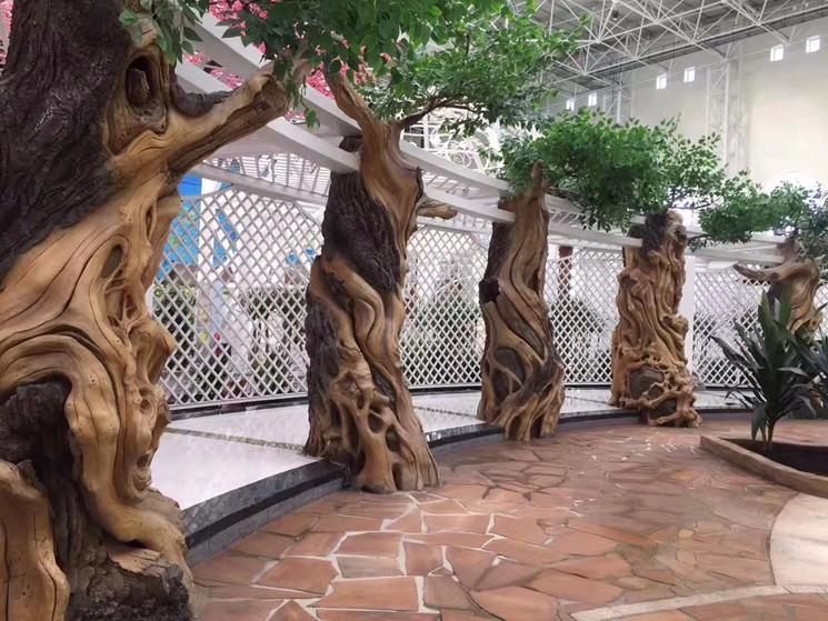 本項(xiàng)目建設(shè)在揚(yáng)州一家知名連鎖機(jī)構(gòu)內(nèi)部有2個(gè)水泥柱子,采用仿真樹包裹。柱子直徑80見方,假樹做成型達(dá)到1.5米。樹高4米,樹枝伸展直徑6米。樹葉800枝。工期12天,采用直徑焊接方式。