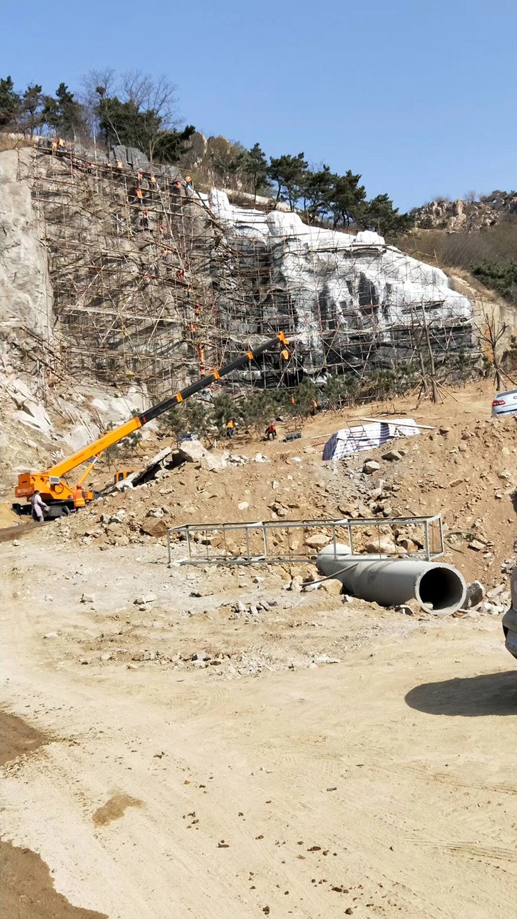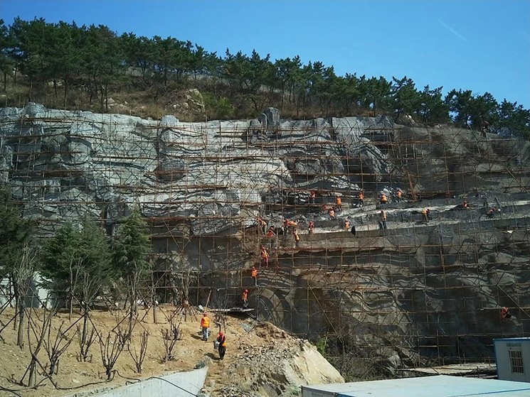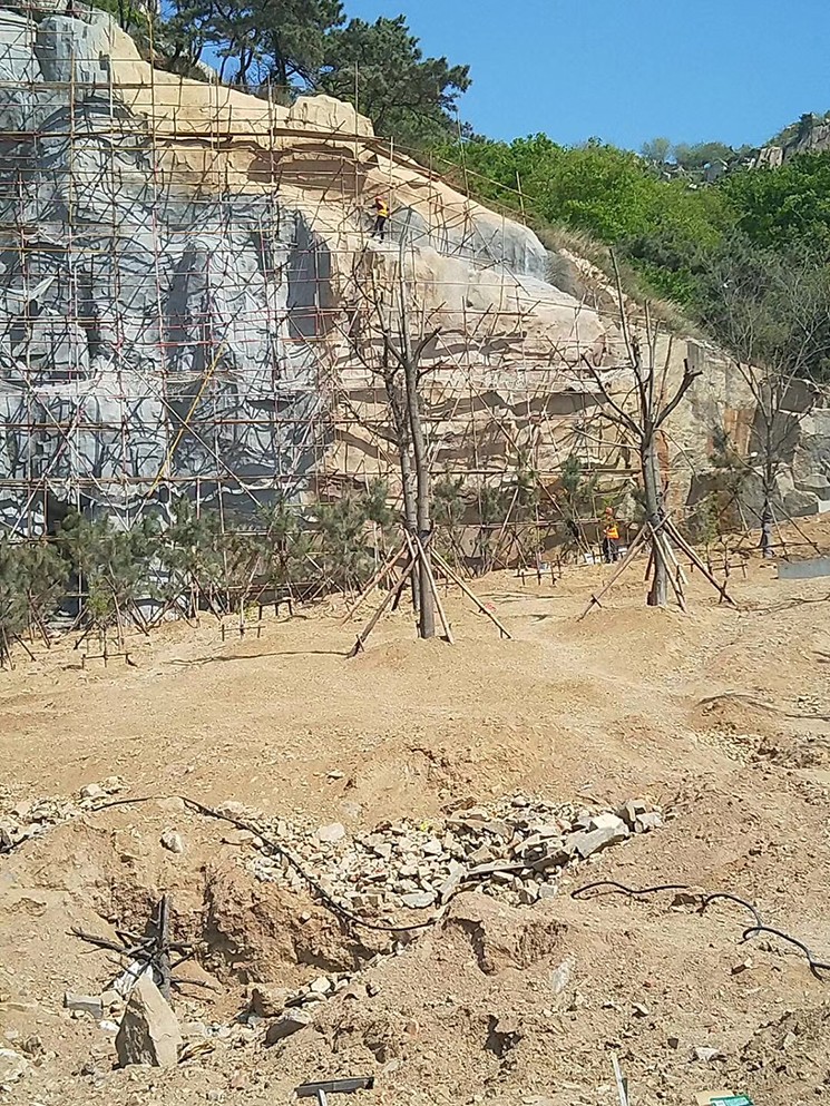 山東青島浮山公園水泥仿真塑石假山,這個項目是典型護坡塑石假山,施工難度系數(shù)7,護坡塑石假山二大注意點第一要與原有山型要匹配仿造現(xiàn)有山型。第二要與原有山型固定牢固。本項目總施工工期40天面積5600平方米。