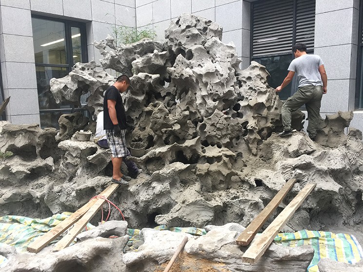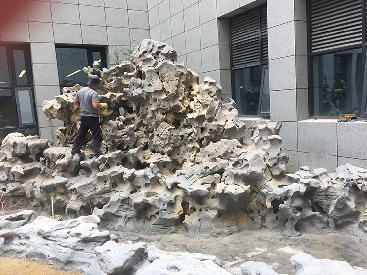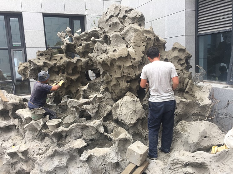 本公司參與南京江寧醫(yī)院水泥仿真太湖石假山建設(shè),本項(xiàng)目是本公司與南京華致建設(shè)中鐵8局再次合作。仿真太湖石是目前仿真塑石假山當(dāng)中工藝要求最高的仿真塑石假山。因?yàn)樘兴?dú)特的特征,師傅仿造非常難,本項(xiàng)目建設(shè)完畢得到院領(lǐng)導(dǎo)和中鐵領(lǐng)導(dǎo)還有南京華致建設(shè)領(lǐng)導(dǎo)認(rèn)可。