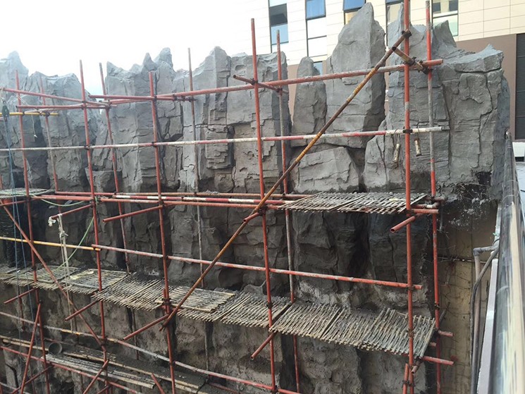 恭賀本公司參與浙江舟山(上海同濟(jì)醫(yī)院舟山分院)塑石假山施工,本項(xiàng)目總工期45天,采用水泥雕刻工藝仿真度達(dá)到90%,是目前國(guó)內(nèi)最主流工藝。項(xiàng)目是下沉廣場(chǎng)高13米周長(zhǎng)45米。