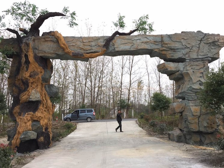 水泥塑石假山包柱子仿真樹仿真樹大門假山大門假山假樹大門