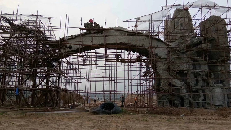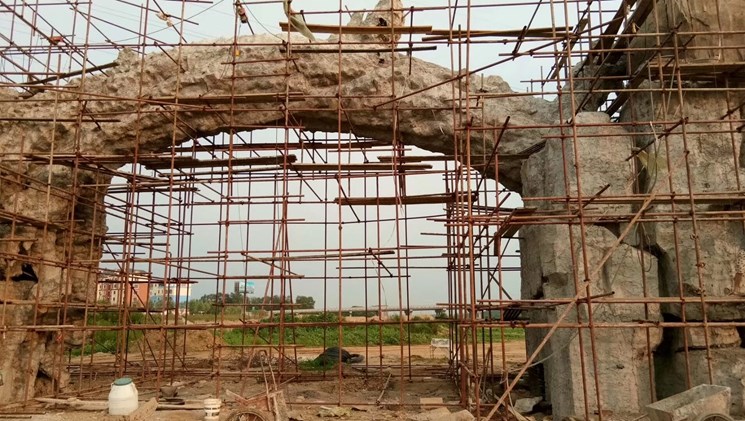 恭賀本公司承接徐州豐縣生態(tài)園仿真大門,本項(xiàng)目采用塑石假山與仿真枯樹結(jié)合方法,總長20米假山面積400平方米,門內(nèi)跨8米高4.5米,施工工期45天。