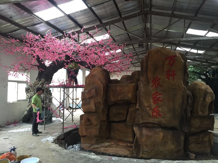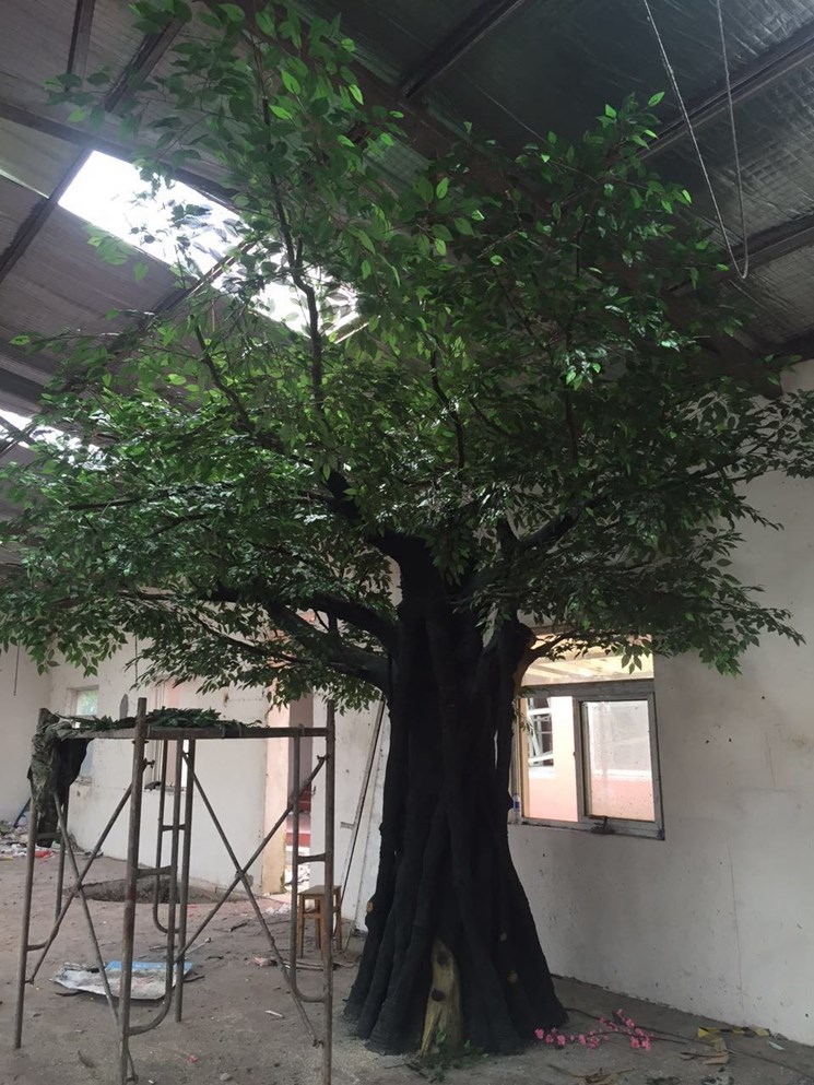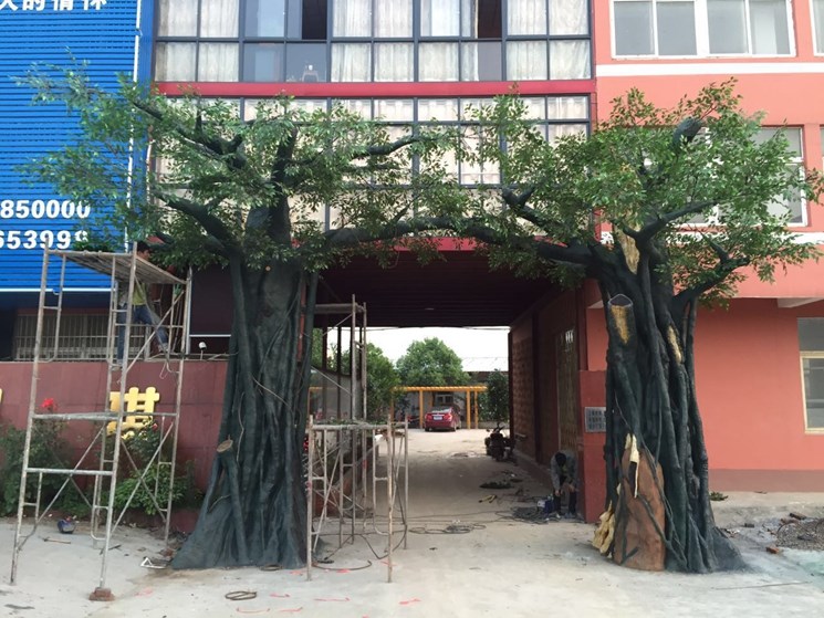 安徽合肥廬江生態(tài)酒店仿真榕樹(shù),仿真樹(shù)做為一個(gè)飯店大門(mén)是特別招人喜歡。本項(xiàng)目是用2個(gè)榕樹(shù)支桿形成一個(gè)門(mén)樓非常惹人注意。高度6米主干直徑2米。工期20天。內(nèi)部餐廳內(nèi)還做了一座假山及2棵花樹(shù)。使整個(gè)農(nóng)家院在大自然感覺(jué)。特別溫馨和愉快。項(xiàng)目建成的到業(yè)主非常滿意。