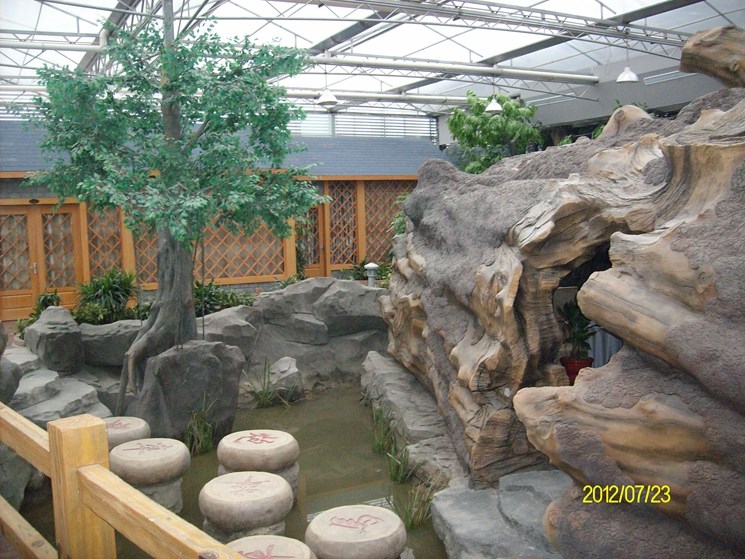 鹽城穩(wěn)強生態(tài)園塑石假山大門及內(nèi)部仿真景觀建設(shè)總工期6個月,塑石假山面積2000平方米左右,仿真樹6棵及水泥雕塑等等。生態(tài)園建設(shè)采用我們這個水泥景觀建設(shè)是目前大多數(shù)生態(tài)園建設(shè)主流。能是整體建設(shè)能融入與大自然環(huán)境。在這種環(huán)境下用餐都是非常愉快與放松的。