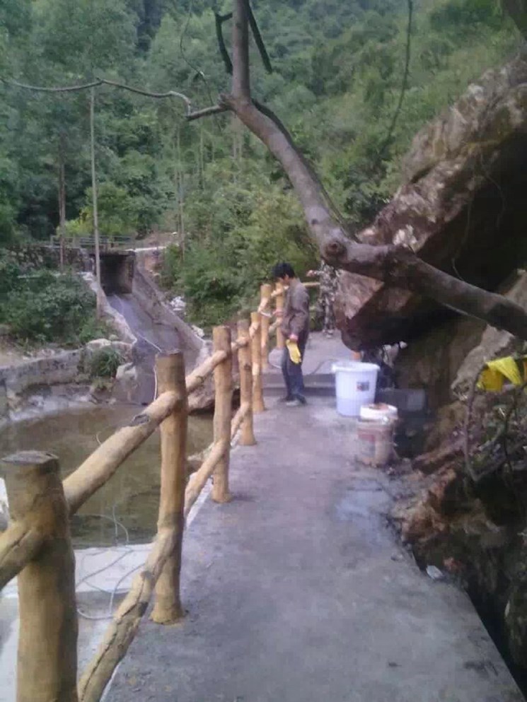 陜西旬陽(yáng)太極城水泥仿木欄桿,總長(zhǎng)1200米,施工工期60天。采用內(nèi)部鋼骨架結(jié)構(gòu)水泥材質(zhì)。在我們沒有去做之前是采用防腐木做的。不過在沒有多久就損壞了后期。知道市面有這種材質(zhì)后期業(yè)主找到我們與他們合作。最后得到業(yè)主認(rèn)可。