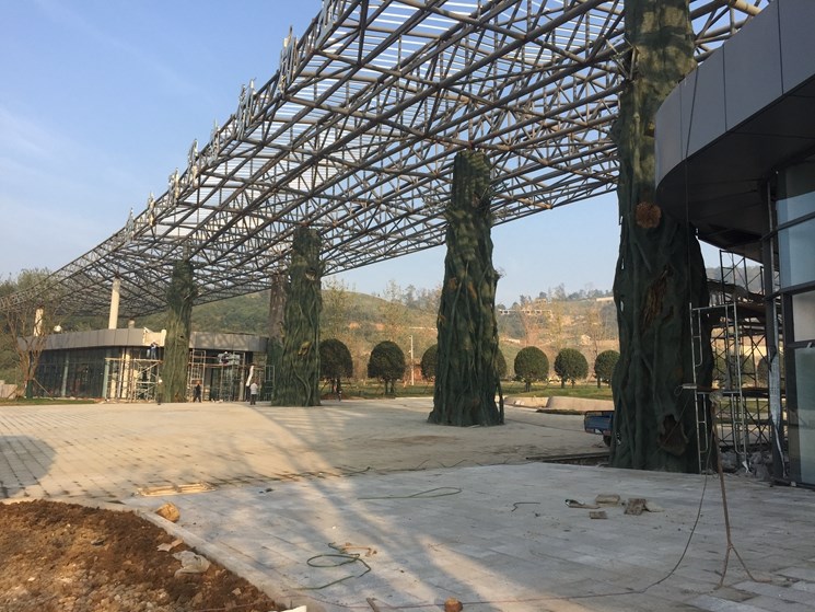 水泥塑石假山包柱子仿真樹仿真樹大門假山大門假山假樹大門