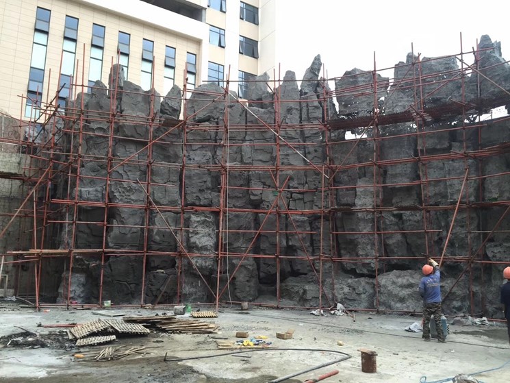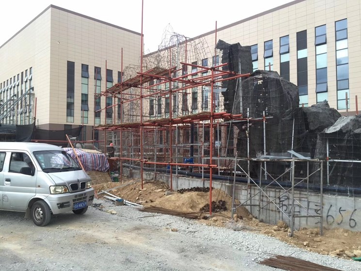 恭賀本公司參與浙江舟山同濟(jì)醫(yī)院舟山分院塑石假山施工,本項(xiàng)目總工期45天,采用水泥雕刻工藝仿真度達(dá)到90%,是目前國內(nèi)最主流工藝。項(xiàng)目是下沉廣場高13米周長45米。