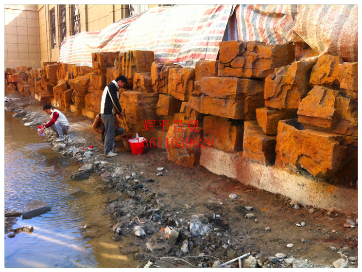 就要從大自然中無(wú)限制的尋找合適的、好看的石頭翻制(工序復(fù)雜),稍后將模具帶回用特種水泥輕松翻制成型——完全凝固后——運(yùn)輸?shù)绞┕がF(xiàn)場(chǎng)——再在鋼筋骨架上拼裝——接縫——上色(或在加工過(guò)程中,按一定比例調(diào)配好顏色直接加工成型),一套模具能夠生產(chǎn)產(chǎn)品3——5次以上。