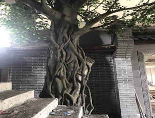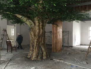 安徽仿真樹之九華山佛緣書畫中心,本項目采用鋼骨架結(jié)構(gòu)把中心柱包裹起來即遮蓋不美觀主題又增加一個經(jīng)典。樹高度3.5米。直徑80cm工期6天。采用真樹枝嫁接工藝。整個仿真榕樹是這個館里焦點(diǎn)。