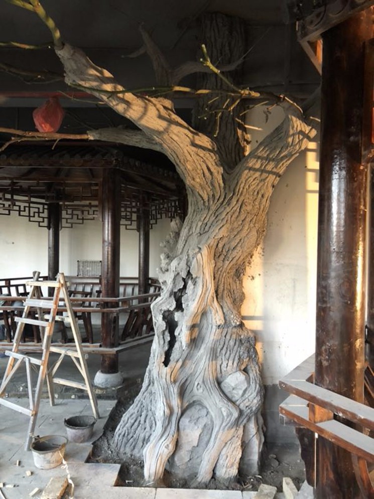 本項(xiàng)目建設(shè)南京高淳云鼎菜場(chǎng)生態(tài)餐廳仿真花樹(shù),樹(shù)高3米直徑0.8米樹(shù)葉200枝。采用真樹(shù)干嫁接工藝工期5天。仿真度90%。